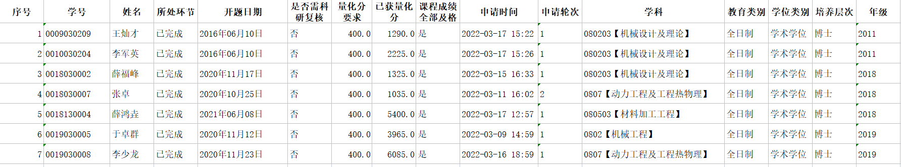 2022年春季申请博士毕业名单公示