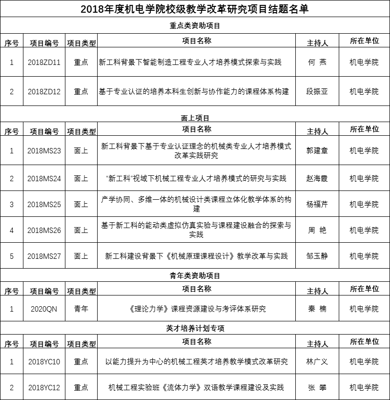 根据 磁力搜索 《关于开展2020年度校级本科教学改革研究项目立项申报暨2018年度校级教改项目结题工作的通知》要求, 磁力搜索 开展了校级教改项目评审工作,经项目负责人申报, 磁力搜索 评审,共通过验收准予结题10项(其中2项暑期提前结题),推荐新立项13项,现将结果公示如下: