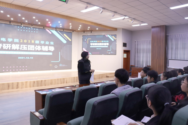 2018级辅导员孙坤岩主持,大四考研学生及部分团学干部报名参加此次团体辅导。