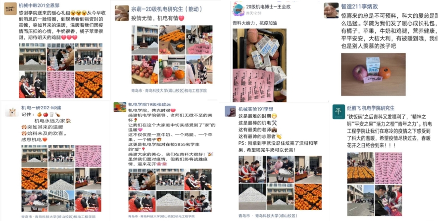 “机电永远的家!”“疫情无情,机电有情”“大爱机电!真的太贴心了!”“青科大yyds!机电yyds!”“我们就是传说中的‘别人家的大学’!”“ 磁力搜索