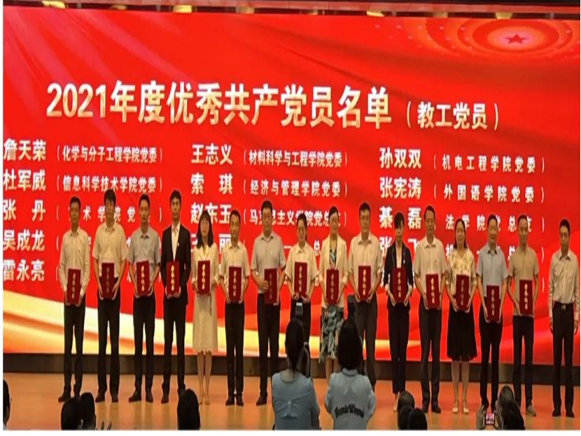 本科生第三党支部荣获“五好”党支部,肖强荣获2021年度思想政治工作先进个人,孙双双荣获2021年度优秀共产党员(教工党员),耿宇轩荣获2021年度优秀共产党员(学生党员)。肖强、王娟娟撰写的《“四史教育”融入新时代青年爱国主义教育研究》获评一等奖;王作辉、杜康参与撰写的《新时代高校劳动教育意义及实施路径》获评一等奖。