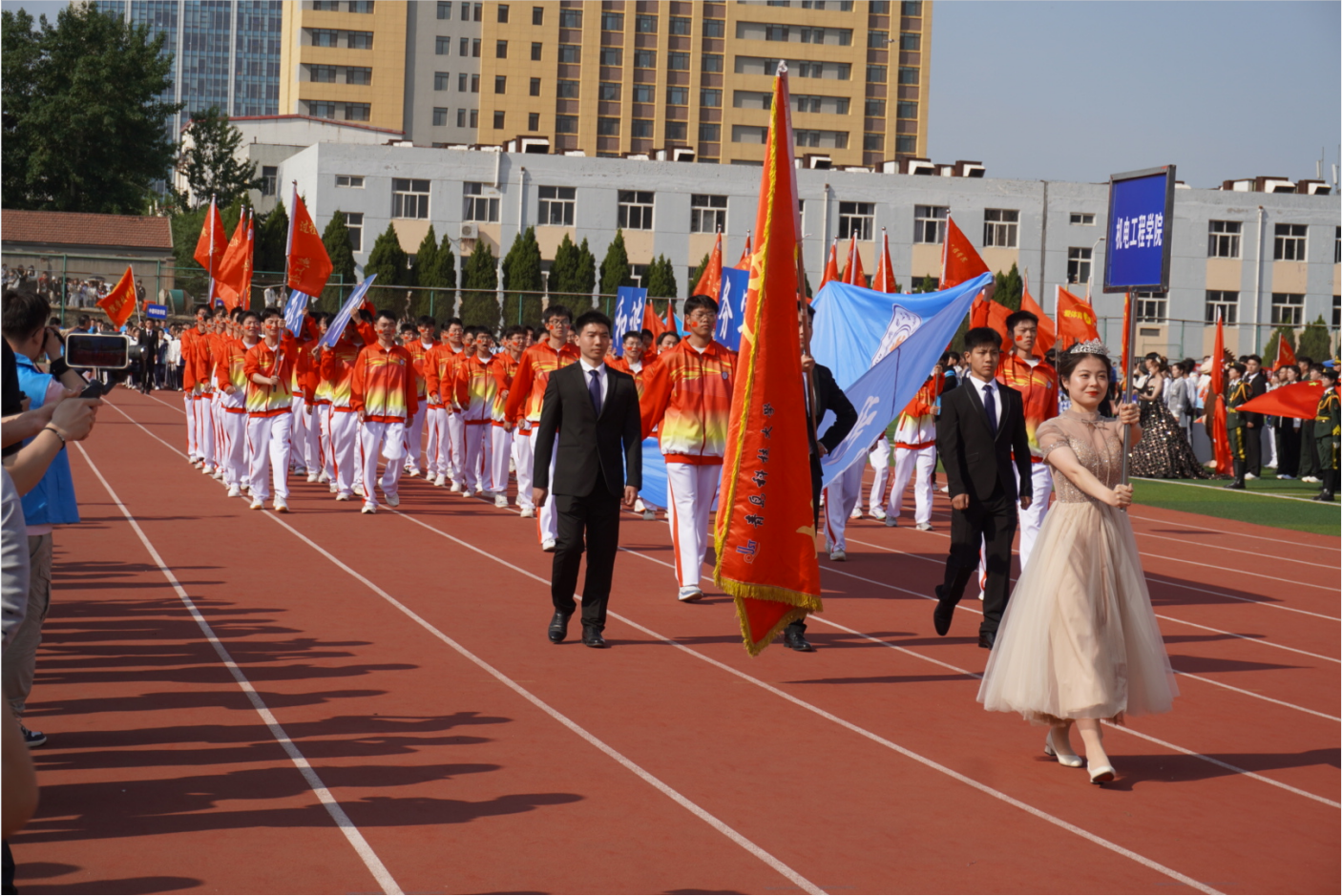 方队步伐整齐、口号响亮,彰显了机电学子斗志昂扬、英姿飒爽的精神面貌,展现出激情飞扬、蓬勃向上的气势。