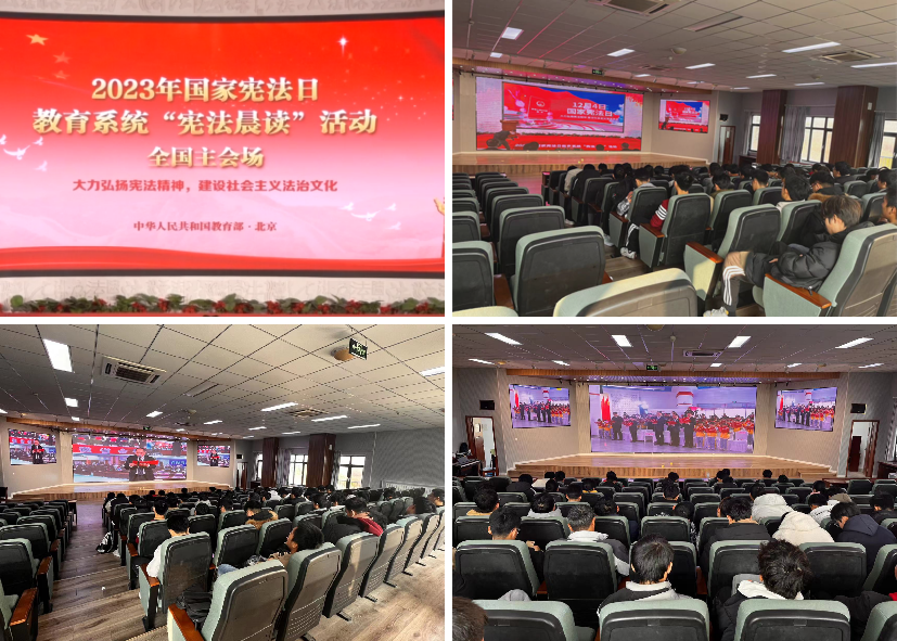 楼530会议室集中观看国家宪法日教育系统“宪法晨读”直播,通过跟随教育部政策法规司领导的领读,高声朗诵宪法部分条款,丰富学生学习宪法形式,提高学生学习宪法的积极性和主动性。