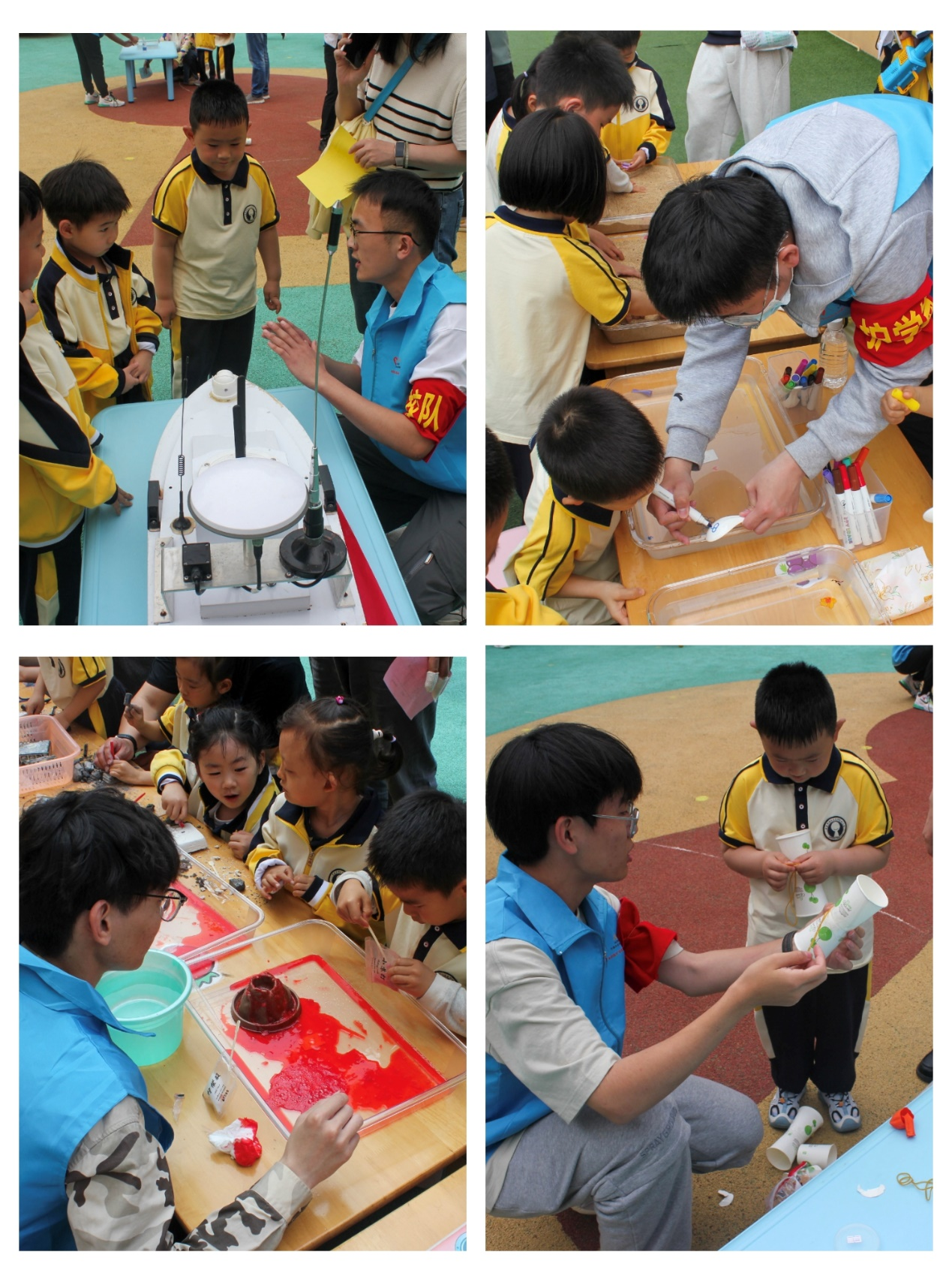 教师的精心组织下,小朋友们井然有序地排队参观了一系列充满科技魅力的项目。他们首先参观了无人艇模型,随后进行了空气炮实验,接着又动手制作了纸杯飞机,体验了蜡烛吸水等科学小实验。在这一系列活动中,志愿者们耐心细致地为小朋友们讲解了其中的科学原理和知识,包括无人艇的精巧构造和工作原理,空气炮的内部结构以及运作机制,气体热胀冷缩的自然规律。每个小实验都引发了小朋友们浓厚的兴趣,他们聚精会神地观察实验现象,动手进行实践操作,并积极向志愿者们提出自己的疑问。现场氛围既热烈又活泼,充满了孩子们对科学知识的渴望和探索精神。