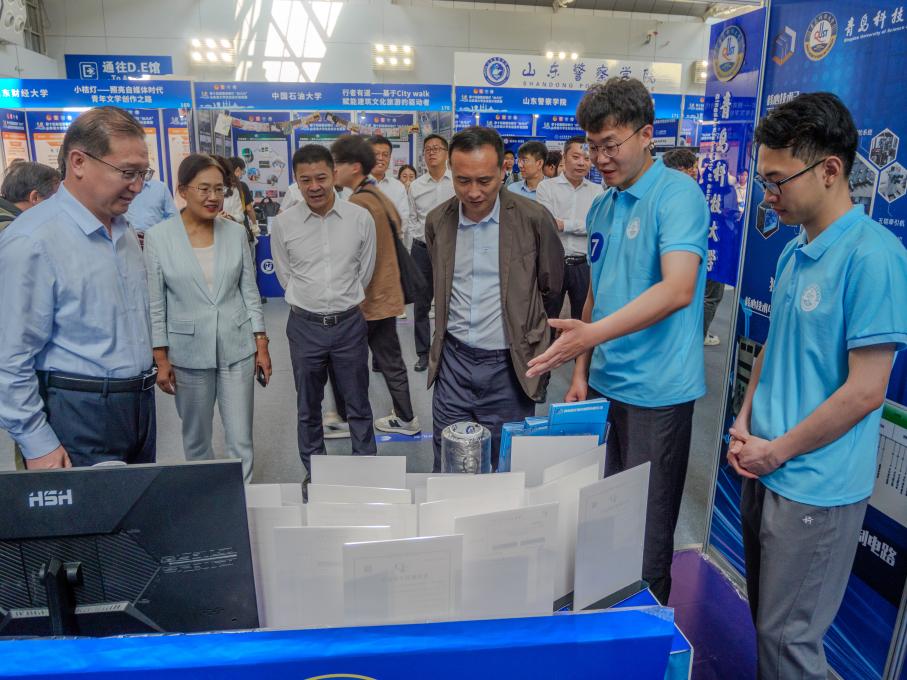 参赛作品展区,听取作品情况汇报,与参赛同学亲切交流,勉励广大学子勇担时代使命,厚植创新沃土,激发创造潜能,为中国式现代化挺膺担当。