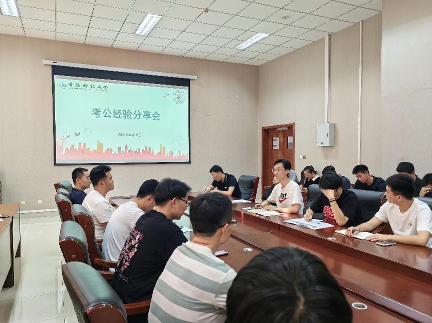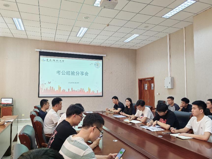 于机电楼518会议室举办考公经验分享会。会议由2025届研究生辅导员姜哲浩主持,2025届和2026届有意向参加公务员考试的研究生参加会议。