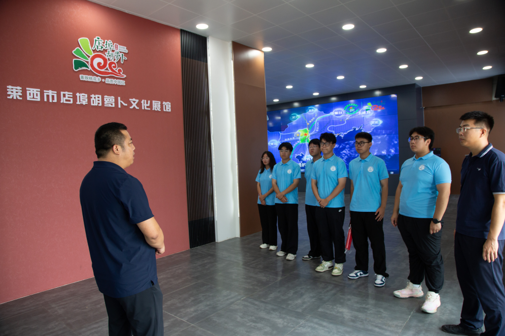 团队成员走进莱西店埠镇胡萝卜文化馆。馆内丰富的图片和珍贵的展品,生动呈现了莱西胡萝卜产业的发展脉络。从种植历史到加工流程,大家全面了解了胡萝卜产业的文化内涵,深刻感受到其在当地经济中的重要地位。