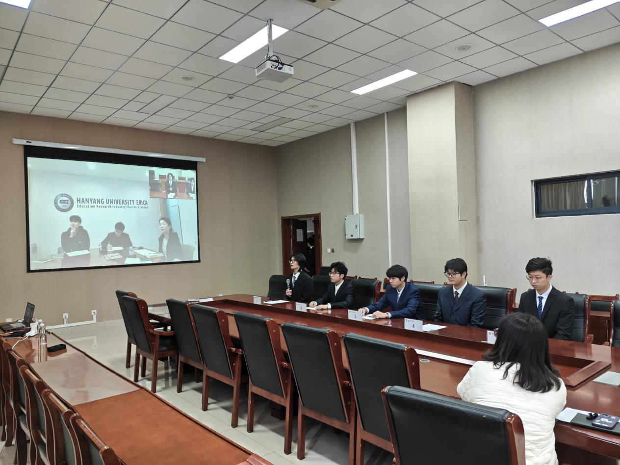 根据汉阳大学定制的2023级中韩合作办学出国选拔通知要求,经过个人申请、资料提交、资格审核、汉阳大学初选,按照总体成绩排序择优选拔,共确定41人免面试录取,25人获取面试资格。依据汉阳大学发布的面试资格名单,参与面试学生5人一组,共5组,开展公开、有序的线上答辩,学生用韩语进行自我介绍及去韩国留学的理由,Keun Ryu就学生韩语考级成绩等方面提问。