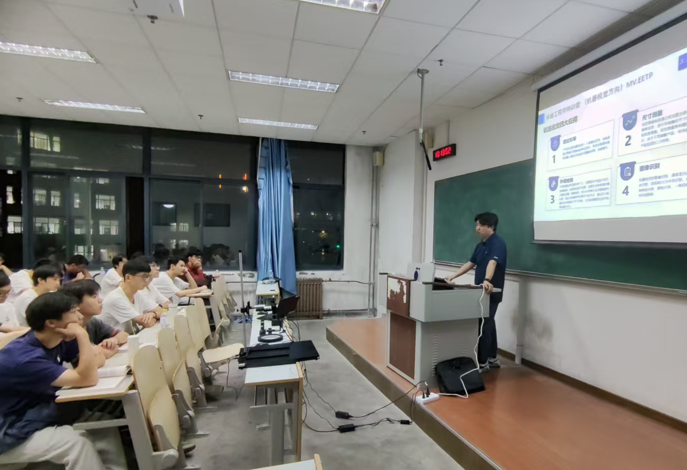 邀请山东产业技术研究院(青岛)的高级工程师开展“机器视觉理论与应用”主题公开课,60余名老师和同学参与此次技术实战课堂,近距离感受机器视觉技术在机械工程、智能制造领域中的创新应用。