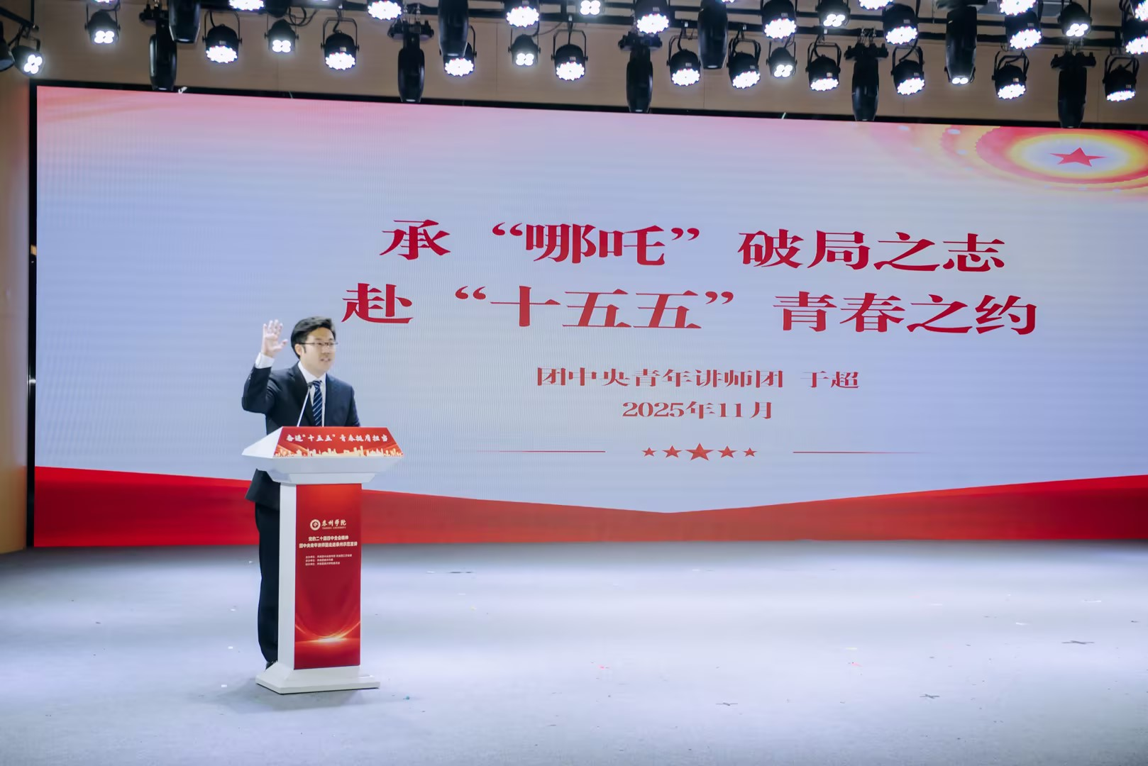 11月12日-22日,在中央团校开展党的二十届四中全会精神集体备课后,于超作为团中央青年讲师团骨干成员赴江苏泰州、南通,山东日照、淄博等地开展“奋进‘十五五’ 青春挺膺担当”党的二十届四中全会精神示范宣讲,在全国示范宣讲活动中,于超紧密结合青年关注热点、理解难点等内容,运用案例故事,引用数据素材,用“青言青语”阐释党的二十届四中全会精神,着力讲清楚“十四五”时期我国发展取得的重大成就,讲清楚“十五五”时期经济社会发展的重大意义、指导思想、重大原则、主要目标、战略任务和重大举措、根本保证,讲清楚贯彻落实全会精神要着重把握的重点,增强青年宣讲的针对性、实效性和引领力、影响力,为各界青年带来全会精神的“青春版”。共青团中央、中国青年报、山东电视台等进行相关报道。