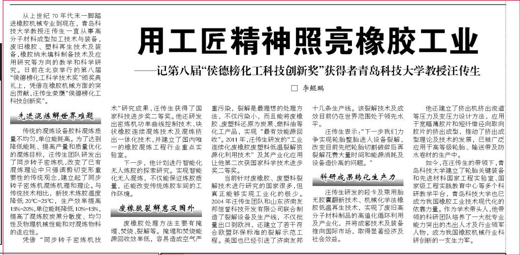 【中国化工报】用工匠精神照亮橡胶工业
