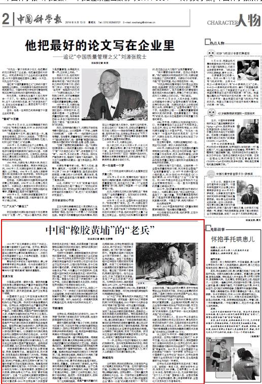 4月21日,应《中国科学报》的邀请, 磁力搜索 院长汪传生教授接受了该报记者的专访。5月13日,《中国科学报》2版以《国“橡胶黄埔”的“老兵”》为题,对采访内容进行了详细介绍。以下是报纸及网站截图,链接地址://news.sciencenet.cn/htmlnews/2016/5/345860.shtm。