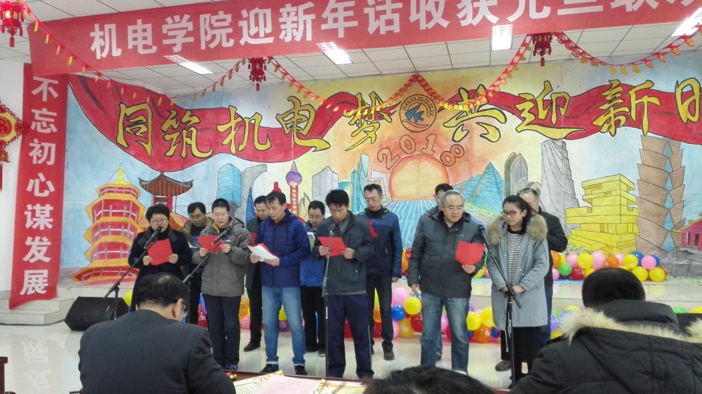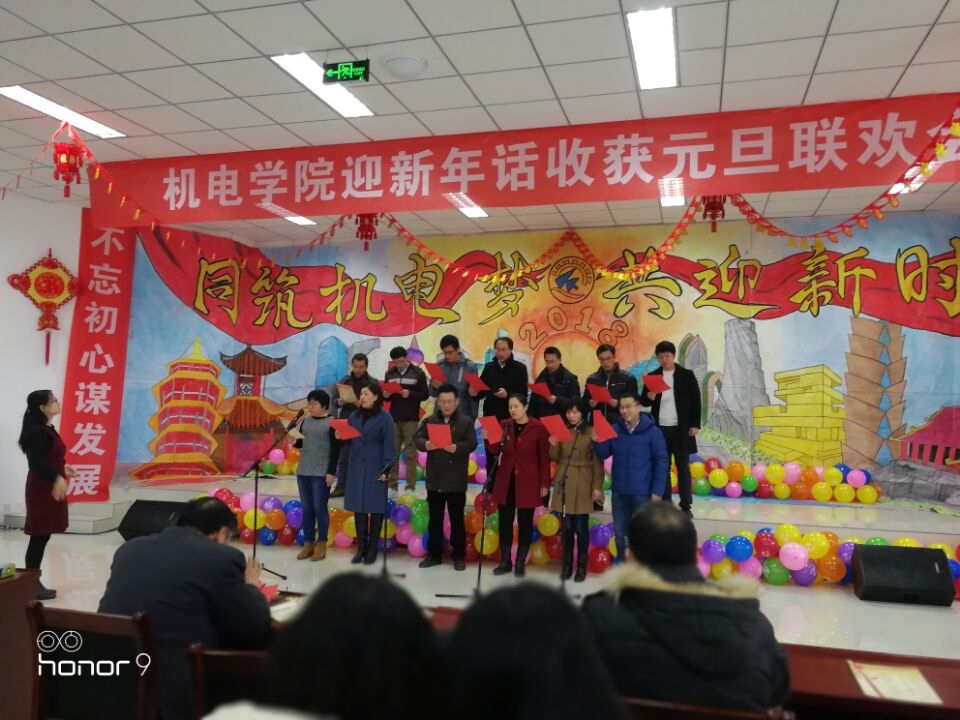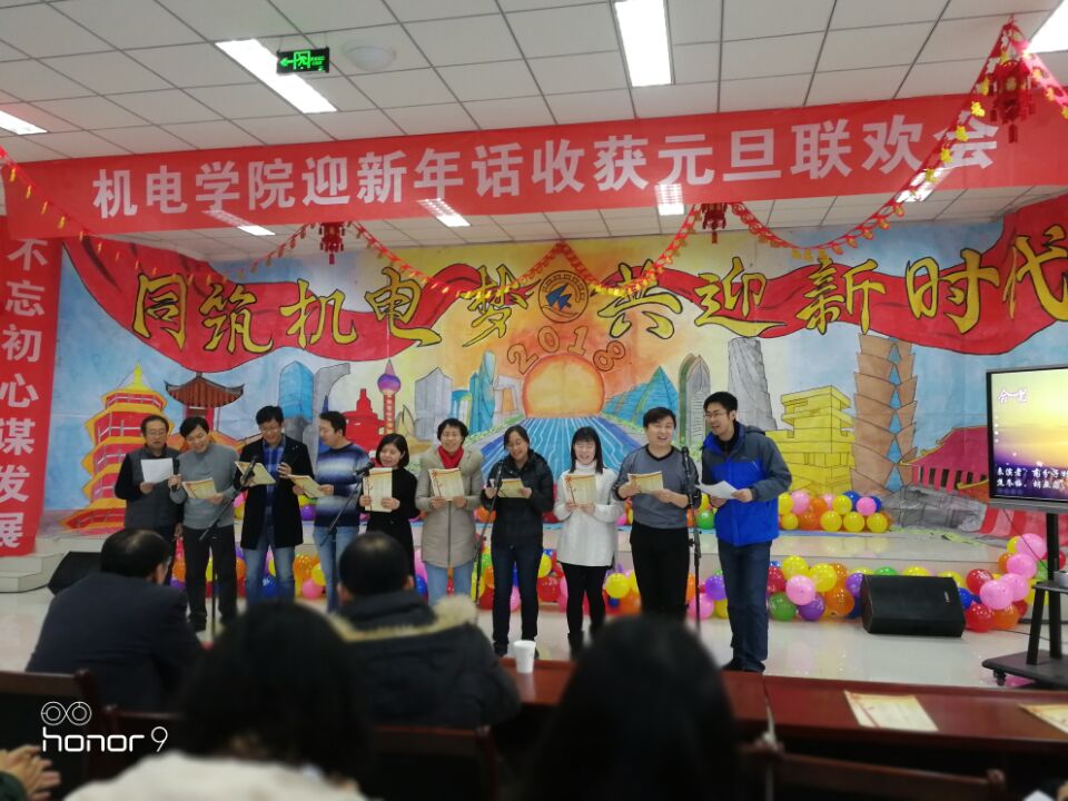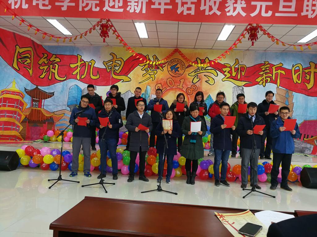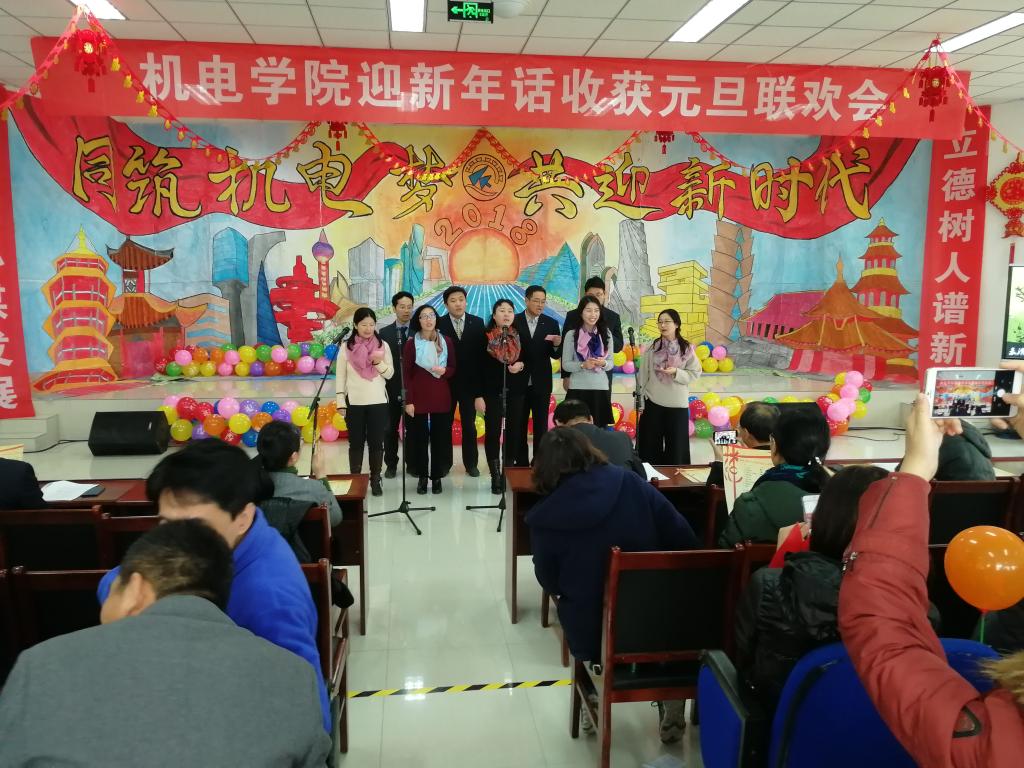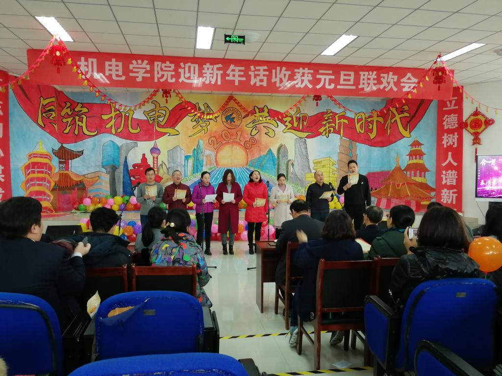 党政领导诗朗诵《歌颂机电》声情并茂,激昂澎湃,体现了对机电的热爱和作为机电人的自豪。一曲《好人一生平安》唱出了全体老师们的新年祝福,祝福大家平平安安、幸福喜乐,同时将本次晚会的娱乐气氛推向高潮。一首首动听的歌曲,一段段优美的舞蹈,洋溢着欢笑的会议室,最后联欢会在《明天会更好》的悠扬音乐中落下帷幕。