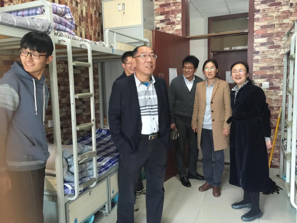 院长何燕、党总支书记孙立军、党总支副书记兼副院长王伟以及分团委全体辅导员在清明小长假后的第一天深入宿舍走访看望学生,并做好安全检查督导工作。
