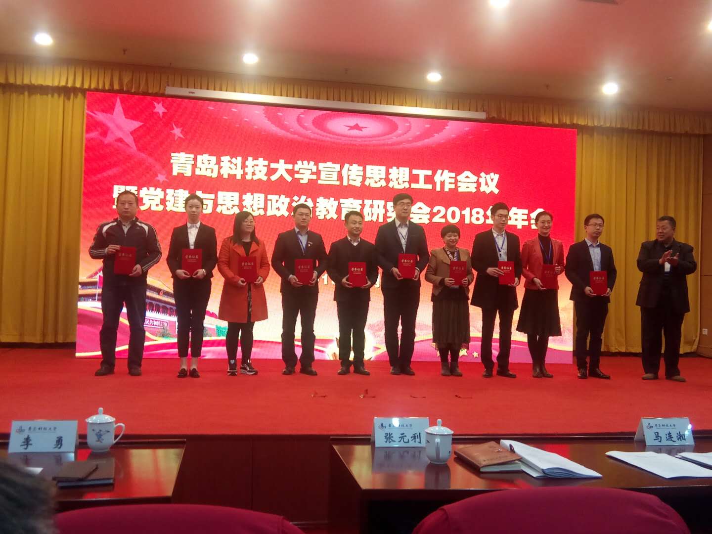据了解,经组织推荐、专家评审,共评选出2017年度思想政治工作集体创新奖8项;十个单位的网站被授予“2017年度青岛科技大学优秀网站”称号;孟祥军等20位同志被授予青岛科技大学“优秀通讯员”荣誉称号;根据文章总数等综合数据,评出了八个“2017年度优秀微信公众平台”。