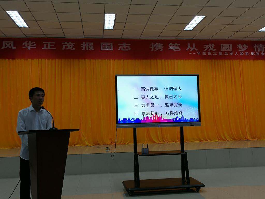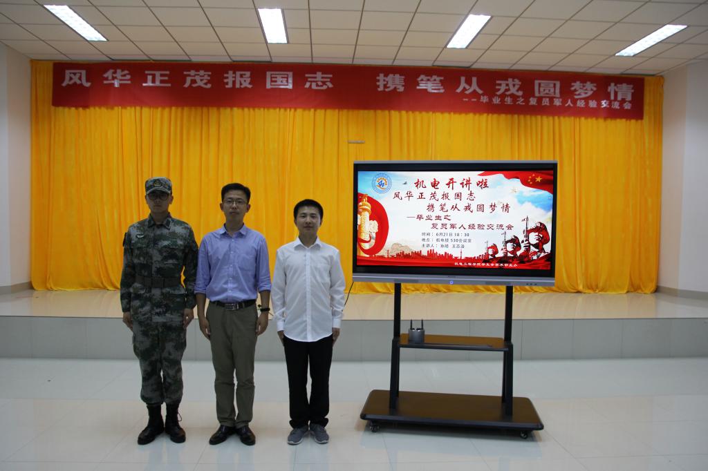 在D3-530会议室举行“五有芳华,机忆留夏”毕业生主题系列教育活动之“风华正茂报国志 携笔从戎圆梦情”。毕业生优秀复员军人王志浩和孙皓作为代表出席,各年级团学骨干、入党积极分子、2018年应征入伍学生参加了会议,会议由 磁力搜索