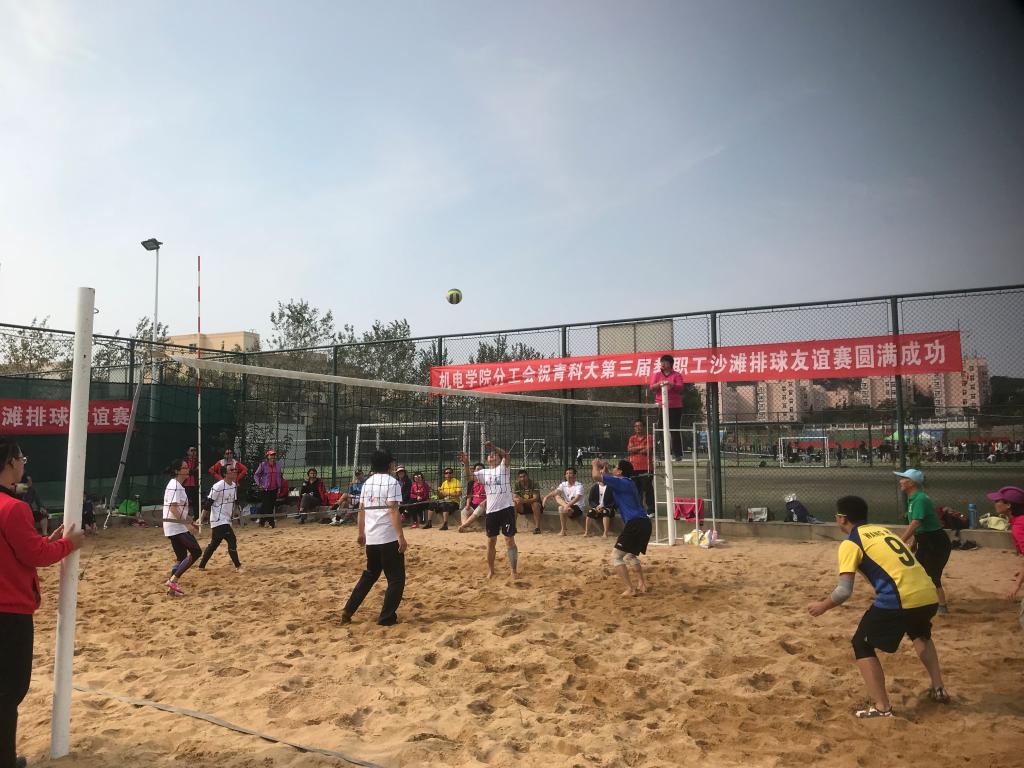 分工会协办的青岛科技大学第三届业余沙滩排球友谊赛在崂山校区沙滩排球场开赛。本次比赛共有来自全校40多名业余排球爱好者和5支代表队参赛。