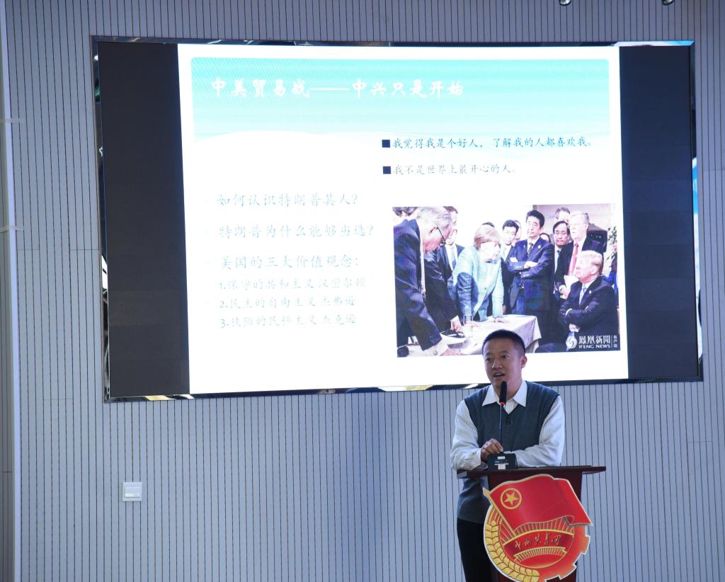 随后,杨小明给大家作了题为《新时代,新作为,新担当——强国一代青年使命与责任》的精彩报告,通过中美贸易战、“一带一路”等国际形势分析,帮助与会的学员们树立正确的政治观,提高政治判断力,引导学员们爱国要从我做起,从小事做起,真正担负起强国一代的的使命与责任。