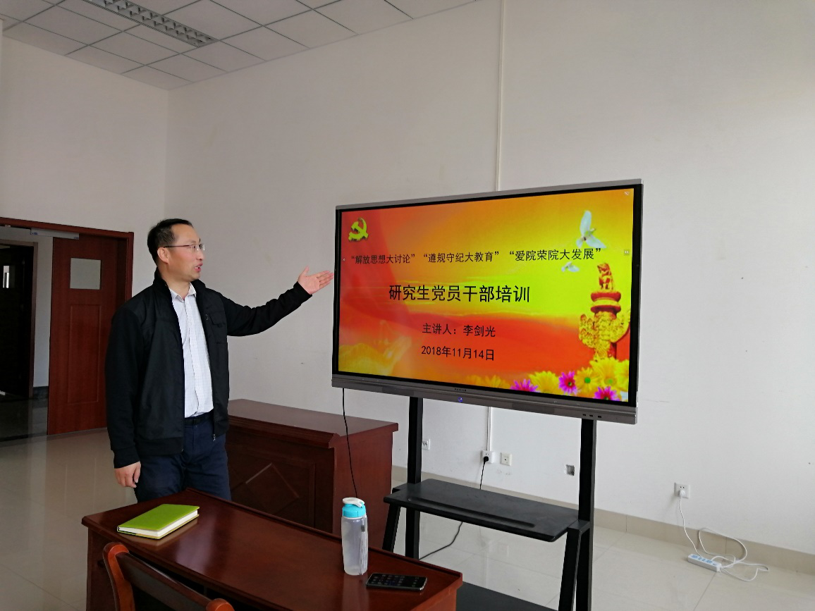 研究生管理工作结合“解放思想大讨论”“遵规守纪大教育”“爱院荣校大发展”主题开展培训。李老师围绕研究生干部、党员的成长与同学们展开了热烈的讨论,指出了一段时间以来,学生干部群体中出现的思想作风、工作作风、纪律作风问题,督促大家杜绝此类现象的出现,真正做到不忘初心。