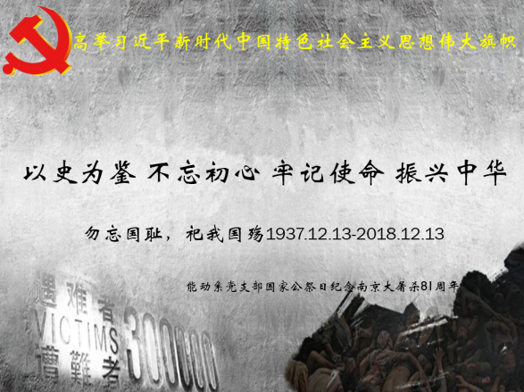 518会议室召开支部全体党员大会,开展“以史为鉴,不忘初心,牢记使命,振兴中华”主题党日活动,缅怀南京大屠杀的无辜死难者,缅怀所有惨遭日本侵略者杀戮的死难同胞,缅怀为中国人民抗日战争胜利献出生命的革命先烈和民族英雄。