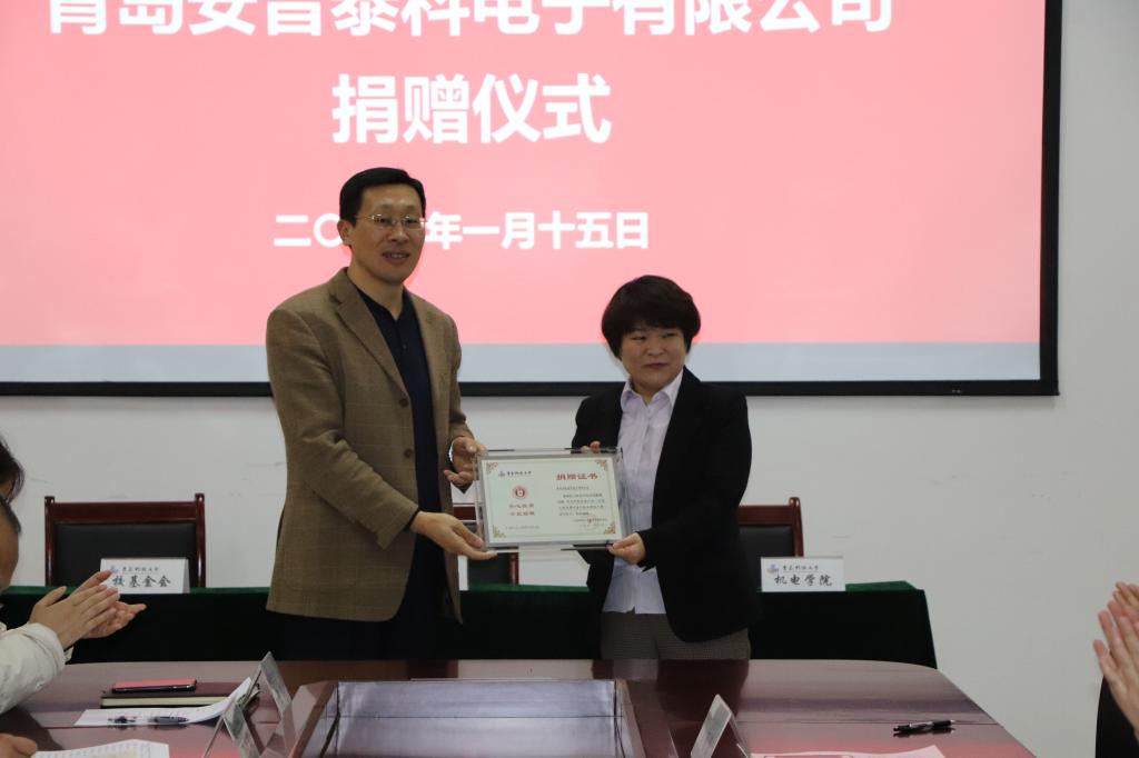 1月15日上午,青岛安普泰科电子有限公司捐赠仪式在机电大楼518会议室隆重举行。校友办主任兼教育发展基金会秘书长聂广明、 磁力搜索