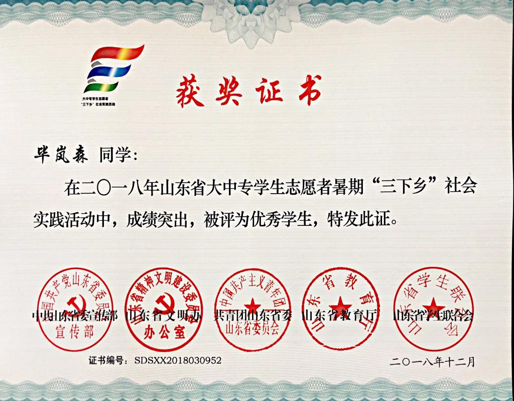 近日,2018年山东省大中专学生志愿者暑期文化科技卫生“三下乡”社会实践活动先进集体和先进个人的证书下发, 磁力搜索