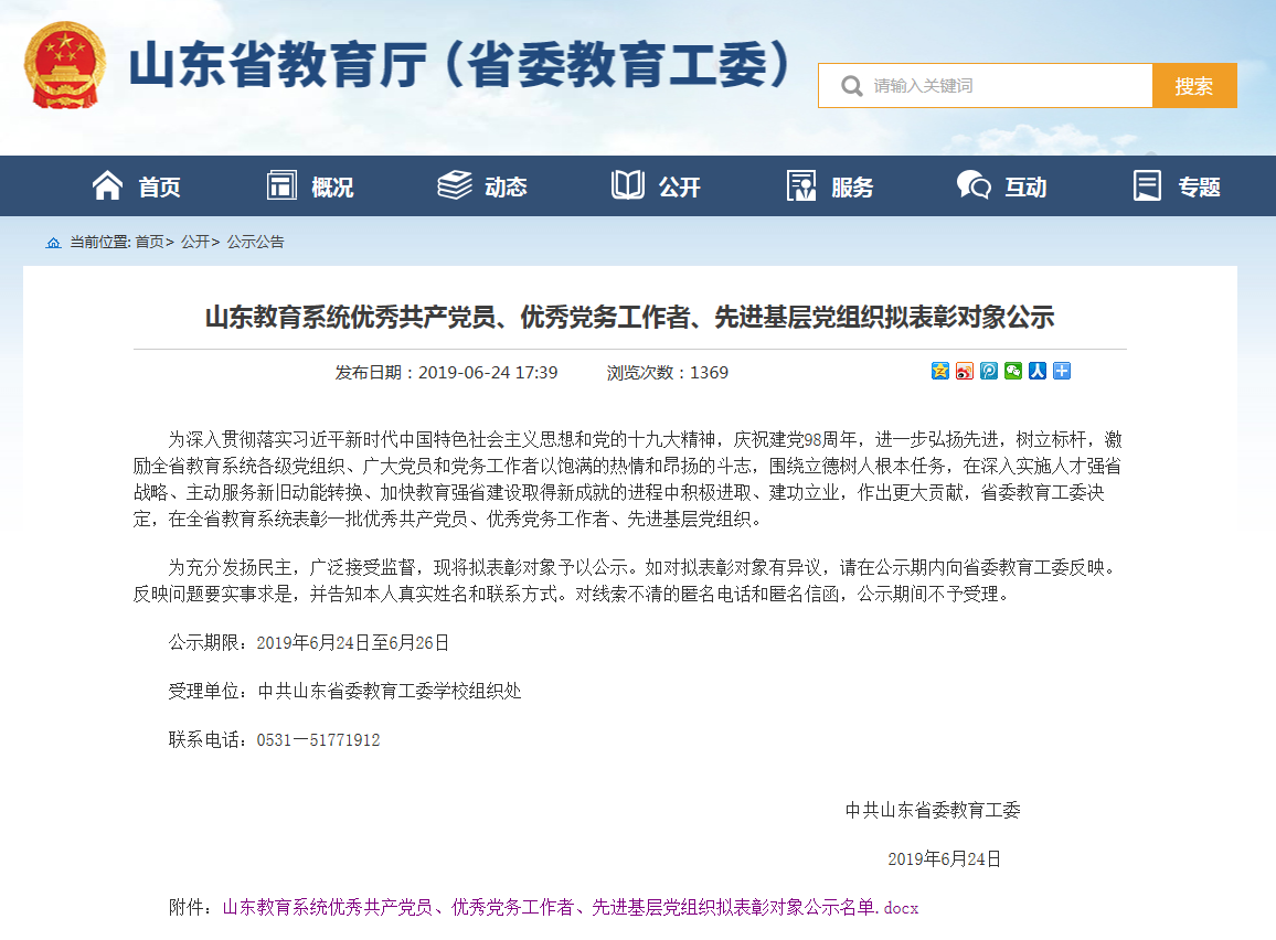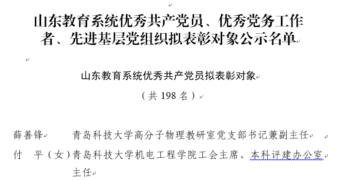 近日,在山东省教育厅公布的山东省教育系统优秀共产党员、优秀党务工作者、先进基层党组织名单中, 磁力搜索