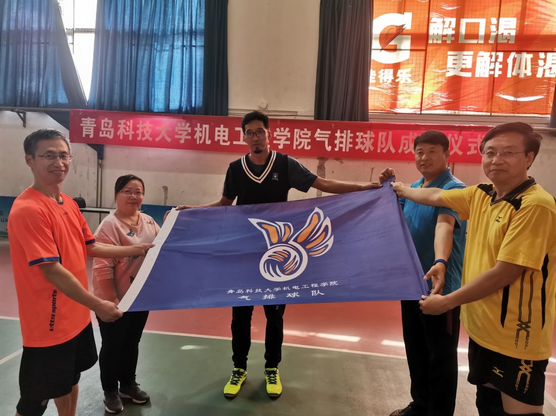 教职工气排球队成立暨授旗仪式。仪式结束后,气排球队组织了一场热身赛。