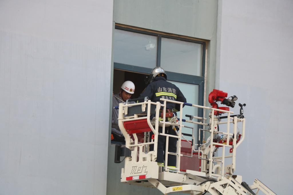随后,崂山区消防大队的消防员用云梯消防车为同学们模拟演示了用高压水枪灭火和用伸缩云梯救助被困人员的场景。最后,青岛市崂山区消防大队的张队长通过现场展示向大家生动而详细地介绍了干粉灭火器的使用方法,同时为了让现场的同学掌握灭火器的使用方法,消防大队准备了数十个干粉灭火器供大家练习操作。现场共二十名多同学体验了手持灭火器灭火,学会了正确使用灭火器的方法。