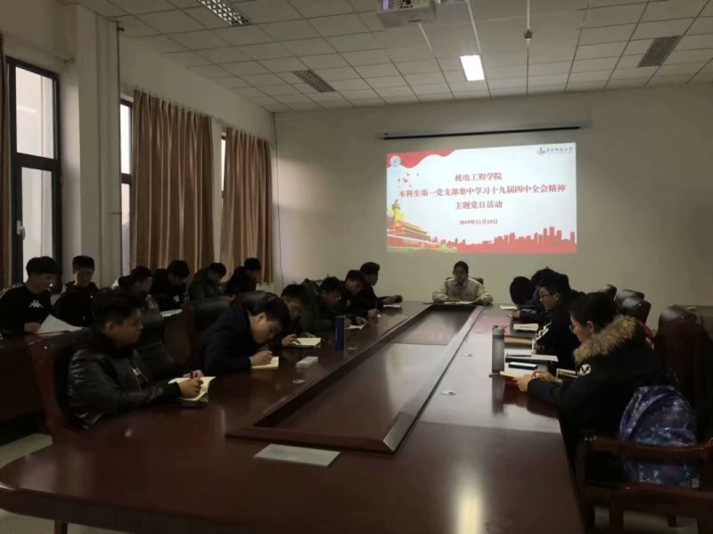 “不忘初心、牢记使命”主题教育安排,11月19日下午,本科生第一党支部在518会议室开展了学习十九届四中全会精神主题党日活动,活动由党支部副书记郭佩佩主持,全体学生党员参加了活动。