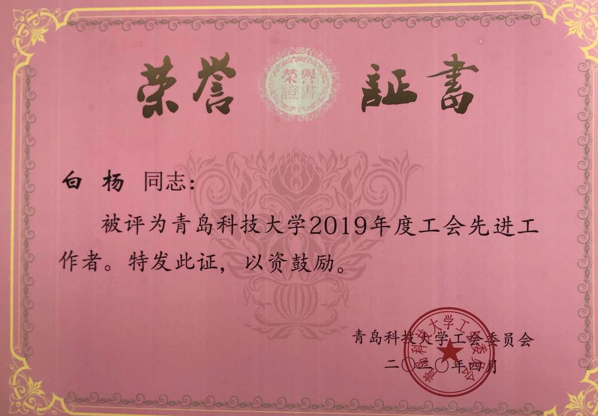 近日,在青岛科技大学工会委员会公布的《关于表彰2019年度青岛科技大学工会先进集体、先进工作者的决定》中, 磁力搜索 获多项荣誉。其中: