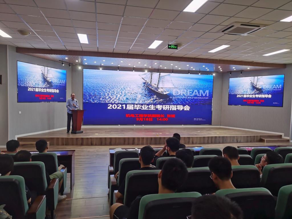 副院长张斌在机电楼530会议室为2021届毕业生进行考研指导,毕业班辅导员王娟娟、王玉凯、延鹏飞老师参加会议,部分考研学生积极参与其中。