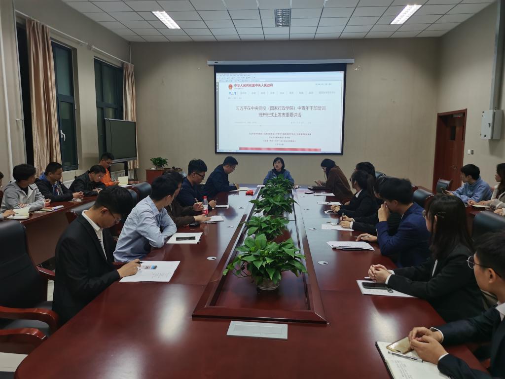 )中青年干部培训班开班式上发表重要讲话,旨在提高年轻干部解决实际问题能力,教育广大学生党员勇于直面问题,想干事、能干事、干成事,不断解决问题、破解难题。本次会议由党支部书记王娟娟老师主持。