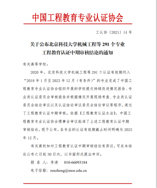 近日,中国工程教育专业认证协会发布了《关于公布北京科技大学机械工程等291个专业工程教育认证中期审核结论的通知》, 磁力搜索