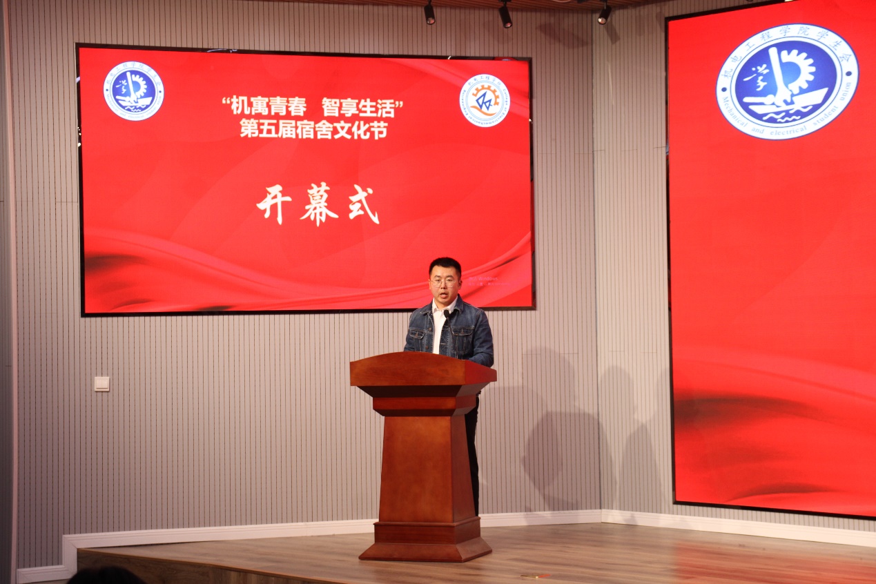 对本次宿舍文化节开幕式的举办表示热烈祝贺,并围绕学生的卫生、安全、学习、科创、文化建设以及学生的生涯规划等方面提出了要求。宿舍是大学生生活的主要场所、学习的重要阵地,同学们需要精诚团结、共同努力,维护好宿舍的环境,营造温馨的氛围。宿舍文化节给予同学们一个展示自我、提升自我的舞台,要抓好机会积极作为,为打造具有机电特色的学习型、文明型、创新型、和谐型宿舍而努力。
