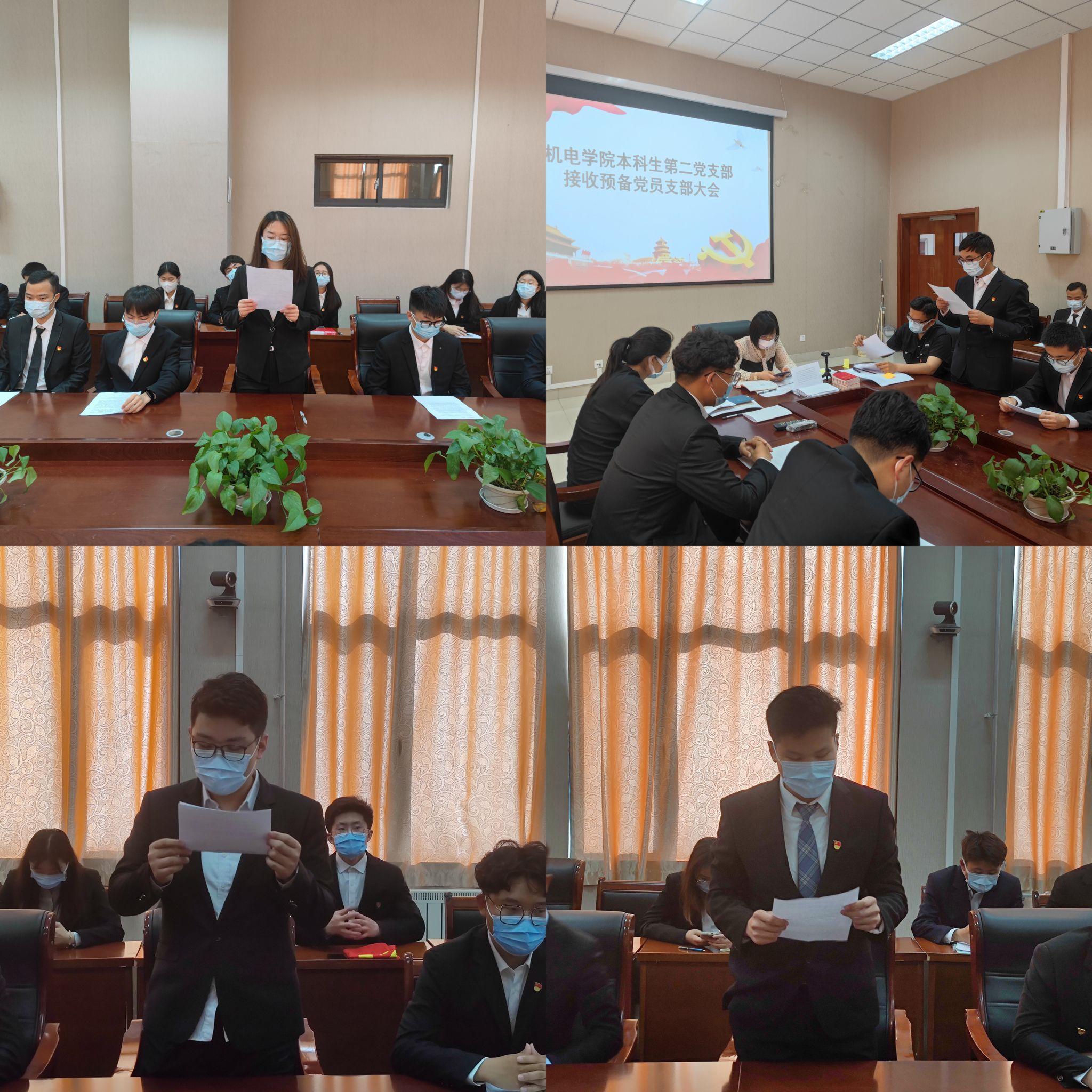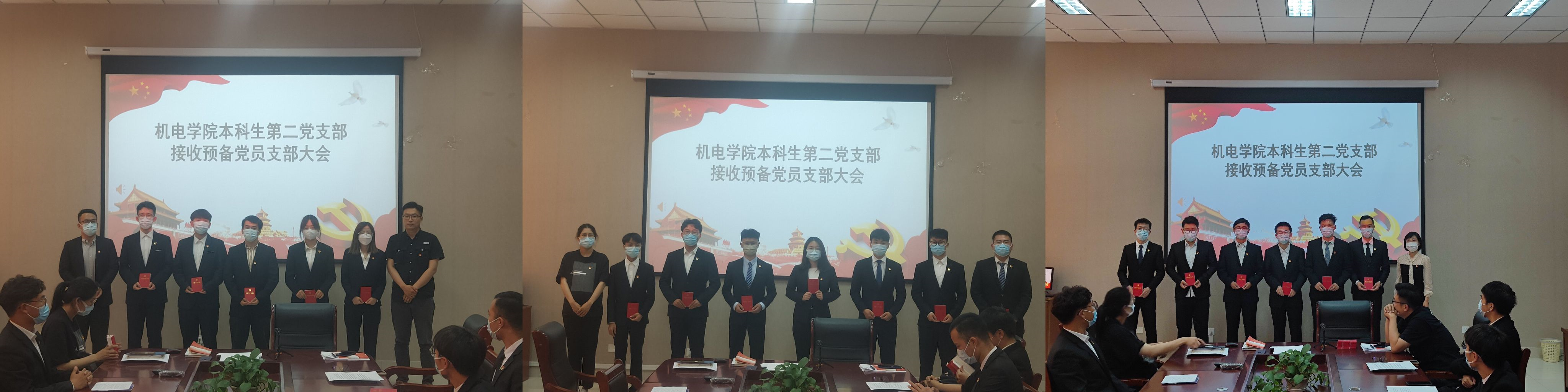 本科生第二党支部于6月7日下午,召开了接收预备党员大会。大会分4批共接纳李子剑、姜方正、黄广勋、梁传珂、曹洪川、张宇晨、卞庆怀、宋国胜、徐瑞杰、李勇超、唐文淇、冯琪菡、刘一童、梁钊、潘宗腾、王心玉、陈行雨、赵帅迪、东海19名发展对象成为预备党员。本次会议由党支部书记王娟娟主持,应到党员3人,实到3人,请假0人。