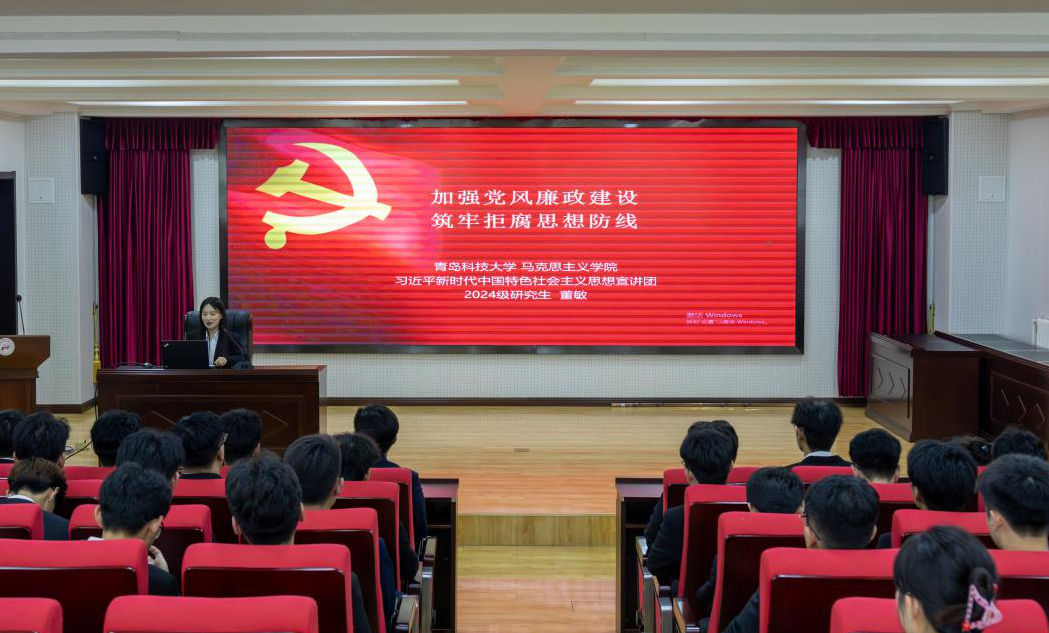 董敏同学以《加强党风廉政建设筑牢拒腐思想防线》为题,围绕中央八项规定精神的核心内容和总体要求,细致地为师生党员讲解如何做到从不敢“腐”到不想“腐”,让师生党员深刻意识到要牢记习近平总书记嘱托,让廉政之风贯彻落实到底,让拒腐思想筑牢内心深处,自觉抵制各种腐败诱惑,以实际行动践行优良作风。