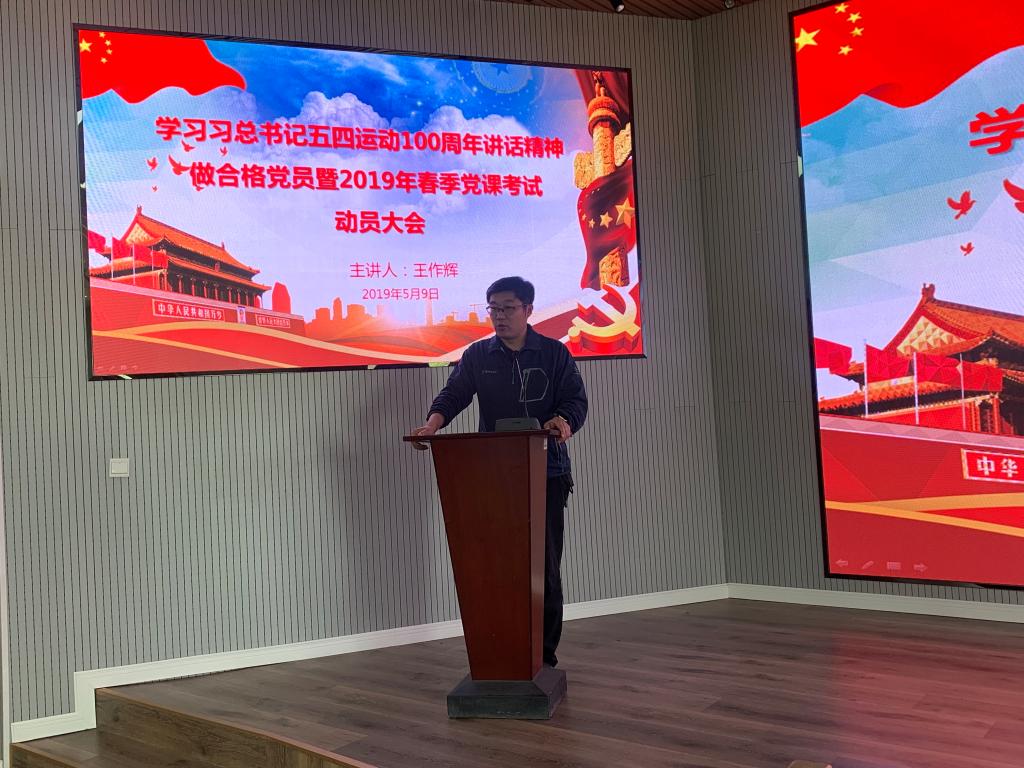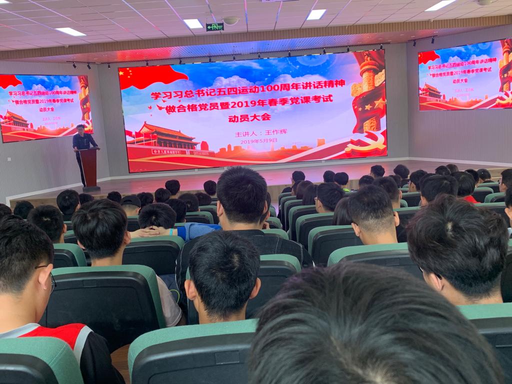 举行学习习近平总书记五四运动100周年讲话精神做合格党员暨2019年春季党课考试动员大会。院分团委书记王作辉主持会议并讲话,2019年春季入党积极分子和发展对象参加了会议。