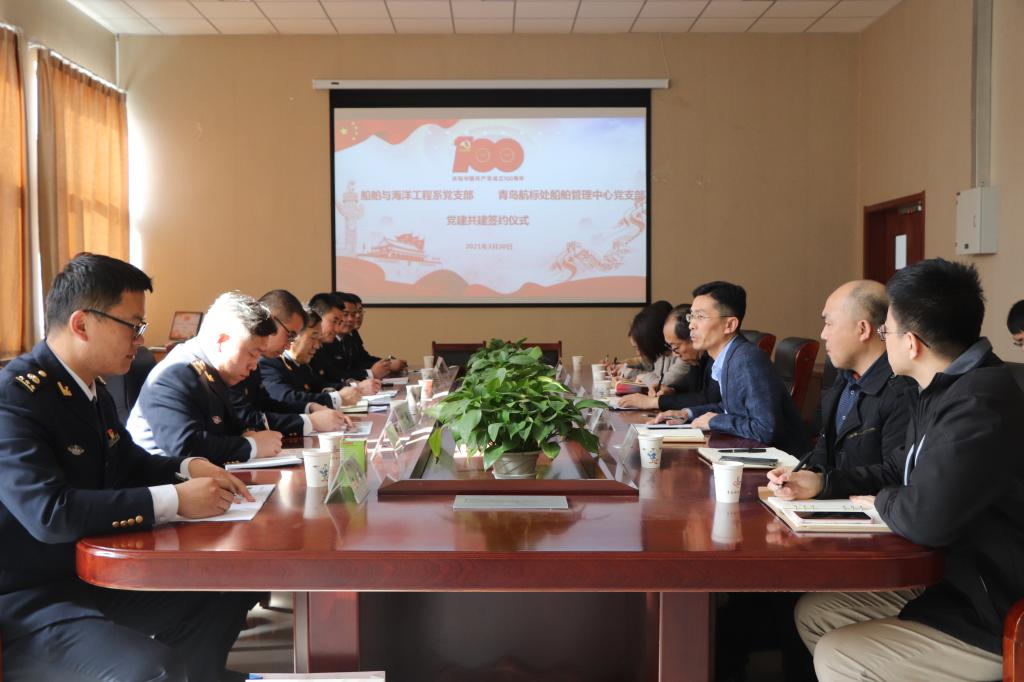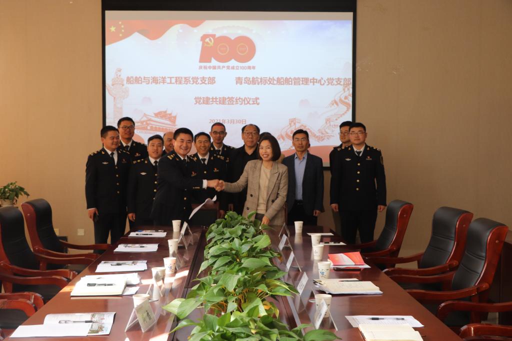 仪式上,船舶工程系党支部书记邓芳、青岛航标处船舶管理中心党支部分别代表双方签订党建共建协议。根据协议,双方将在党史学习教育、庆祝建党一百周年、推动中心工作等方面通过开展丰富的共建活动,有效建立起资源共享、人才共育、发展共赢的工作模式,达到“一举多赢”的良好效果,全面推进双方各项工作取得新突破,再上新台阶。