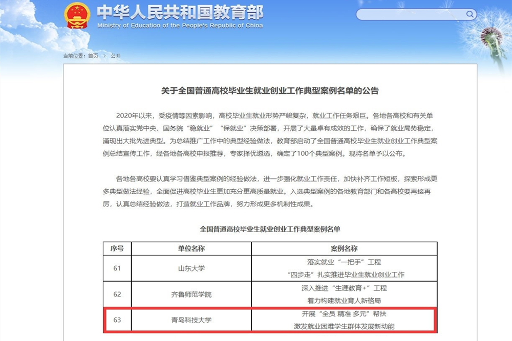 入选全国100个普通高校毕业生就业创业工作典型案例