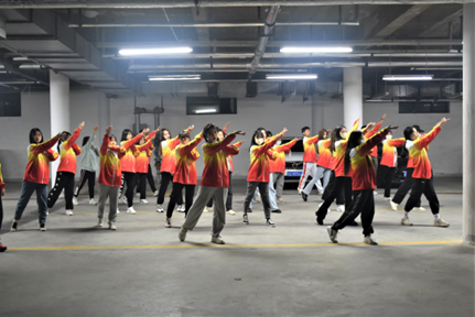 工作,组织开展了排舞班级选拔和集中训练。
