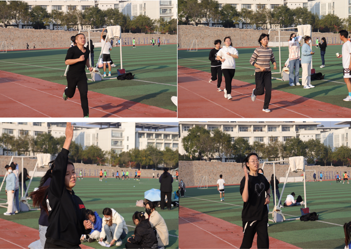 比赛开始前,为确保自身安全,同学们积极开展热身运动,为接下来的长跑比赛做好充分准备。短暂热身后,长跑健将们站在起跑线一字排开,蓄势待发,随着开始口令的下达,长跑比赛正式开始。健儿们呼吸有节奏,不断调整步频,稳定自身状态。