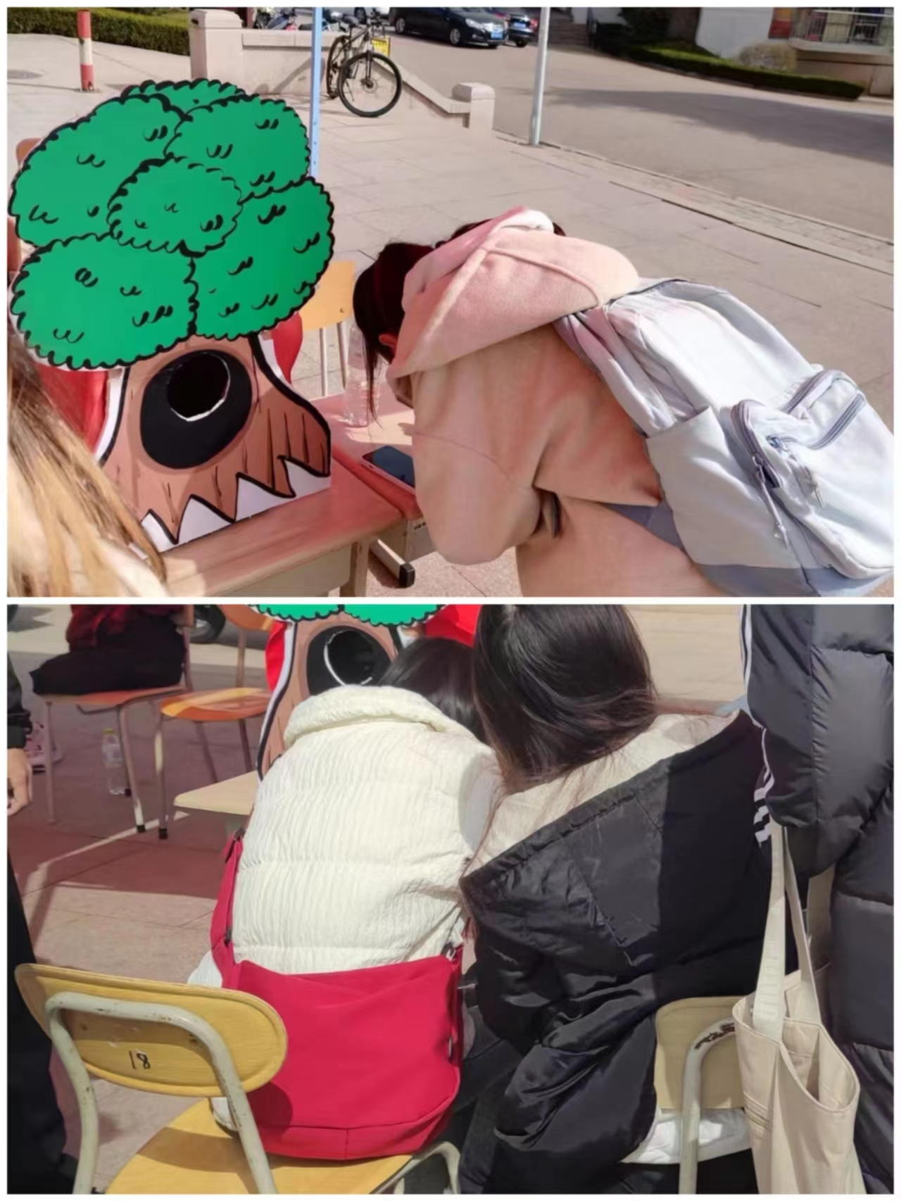 第二个活动——情绪树洞。大家或许有很多情绪无法去释放去倾诉,所以本次活动我们采取匿名倾诉法,让同学们将自己的烦恼、愿望、对他人的祝福等丢入树洞中,以此丢掉自己的烦恼,祝愿自己的心愿,书写对他人的祝福等,让同学们对未来充满希望,心灵得到安慰。