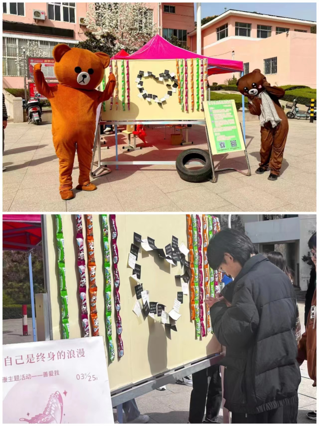 心理协会联合心音心理健康协会面向全校师生在南苑餐厅门口合办“3.25——善爱我”心理健康活动。