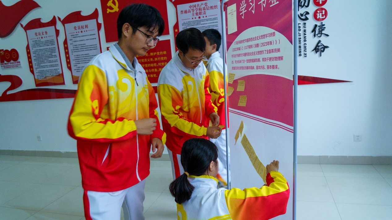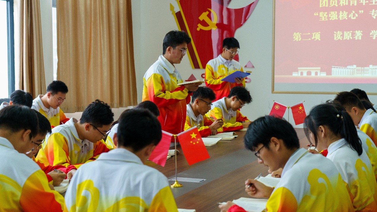“读原著 学原文 悟原理”。赵梓清同学表示:祖国十年的变化,都得益于习近平新时代中国特色社会主义思想。三位团员代表分别带领大家一起阅读学习了《习近平新时代中国特色社会主义思想学习纲要(2023年版)》,重点学习了坚持“两个维护”方面的内容,引领团支部全体成员深刻领悟“两个确立”的决定性意义,增强“四个意识”、坚定“四个自信”、坚决做到“两个维护”。
