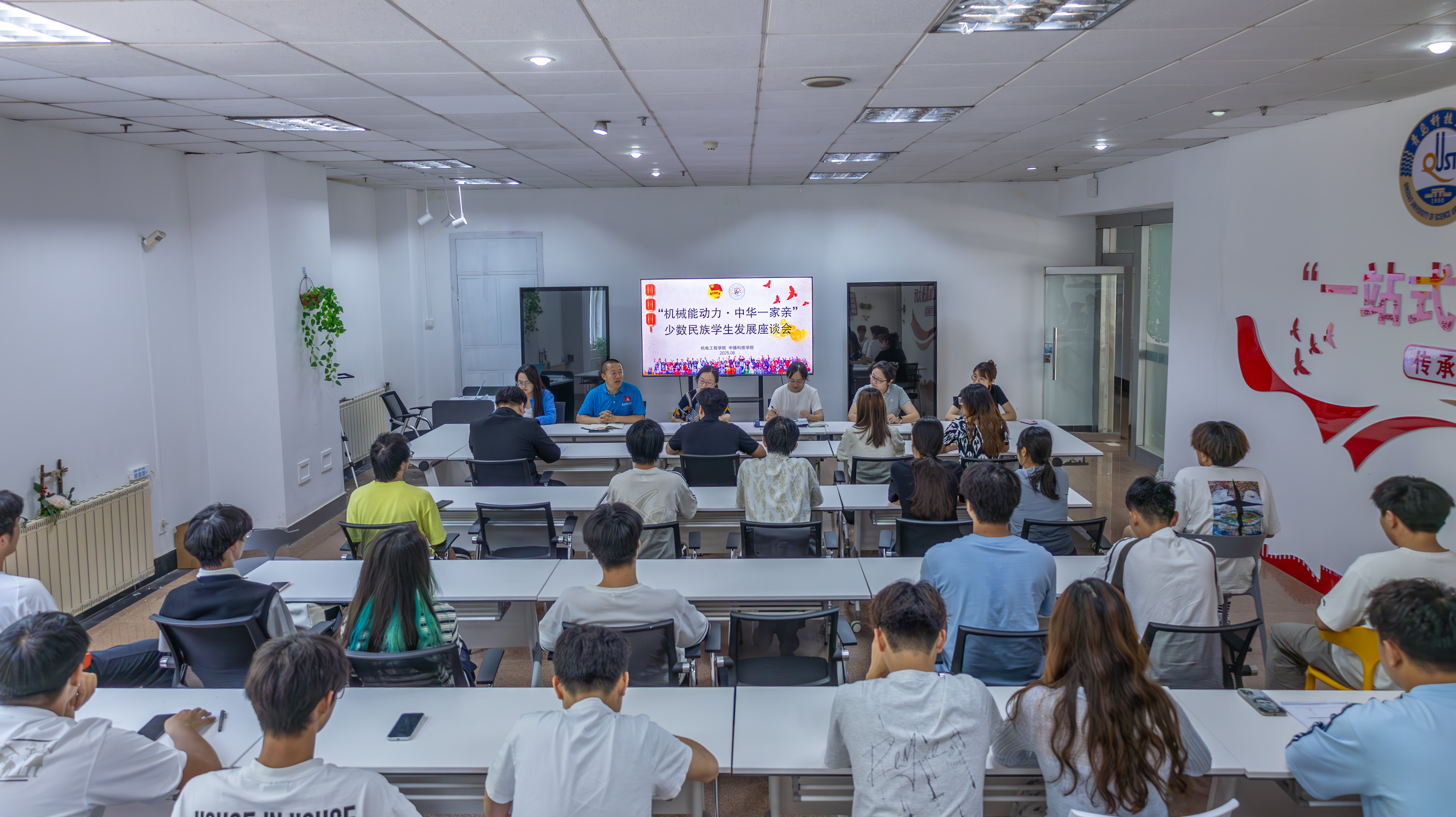 民族工作开展情况。杨小明分享了《中华民族共同体概论》学习感受,希望同学们在学习工作生活中,相互尊重、相互学习、相互帮助,共同营造团结向上的校园文化氛围。四位少数民族同学代表依次分享了入学以来的生活学习工作经历和未来人生规划畅想。会上,与会老师和高年级同学共同解答了同学们在学习、工作、生活中遇到的困惑。
