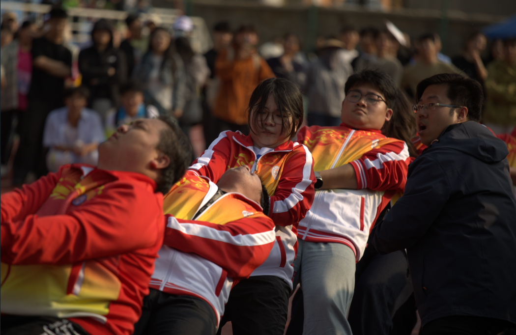 一场力量与信念的较量在此热血上演。赛场上,麻绳紧绷如弦,选手们眼神坚毅、马步稳扎,将机电学子的韧劲与拼劲熔铸于掌心绳结之间。当哨声划破天际,队伍如钢铁洪流般坚守阵线,呐喊声在校园上空激荡成青春的战歌。每一次绳标的移动,都是团队意志的交锋;每一滴汗水的挥洒,都是青春力量的注脚。经过数轮激烈角逐,参赛队伍用咬牙坚持的姿态,诠释了“人心齐,泰山移”的深刻内涵。