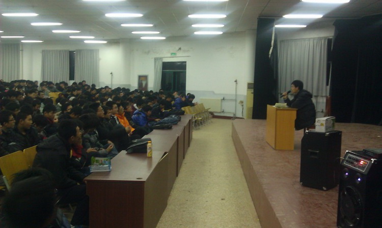 2011级全体同学参加教育大会,会议有辅导员老师秦洪庆主持。