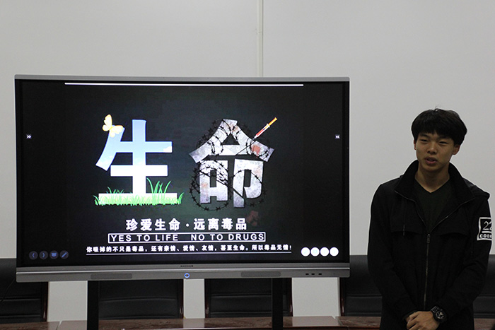 组织观看禁毒短片。学生会秘书处秘书刘璟辰通过众多禁毒事例向同学们介绍了本次活动的意义,希望同学们通过本次活动能够增加对毒品的认识并坚决的抵制毒品。短片介绍了K粉和摇头丸等毒品,并着重讲述毒品的危害及识别方法,短片中人物吸毒前后的身体变化和一步一步走上违法犯罪道路引发惨剧的过程,也给同学们带来心灵上的冲击,引起同学们对禁毒的深思。最后,短片提醒同学们在面对一些新奇的东西时不要贸然尝试,避免不法分子利用当代大学生的猎奇心理诱导其走上吸毒的不归路。
