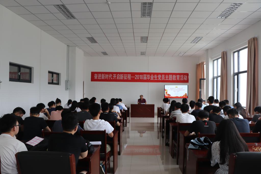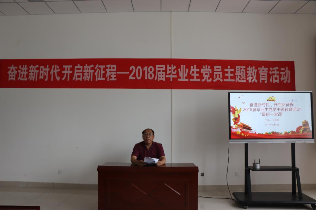 党总支书记孙立军主讲,学生第一党支部书记王作辉主持。60多名2018届毕业生党员参加了党课活动。